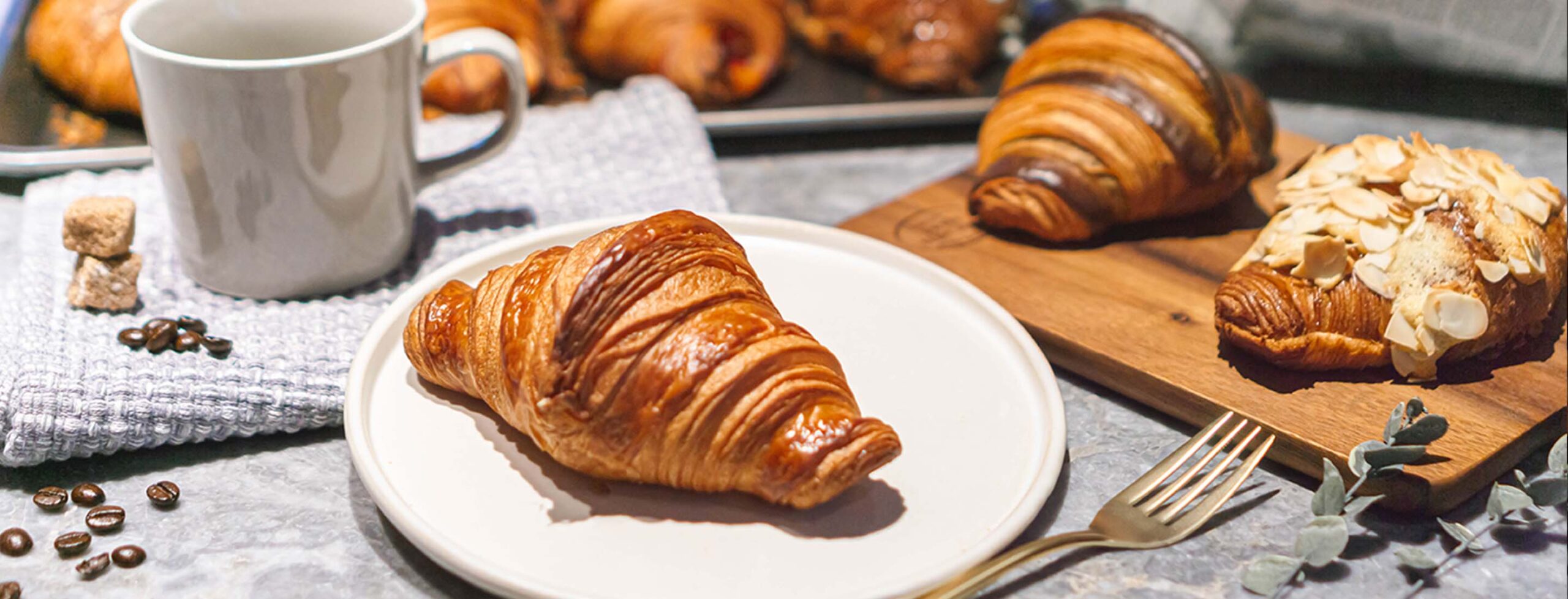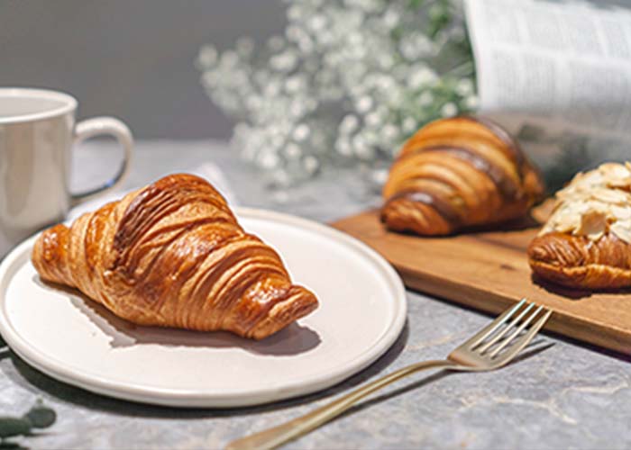 発酵バターを練り込んだ焼き立てのクロワッサンをお楽しみください。